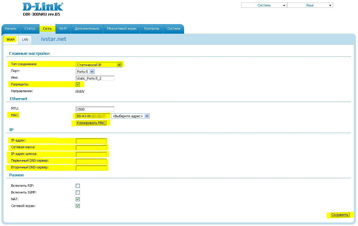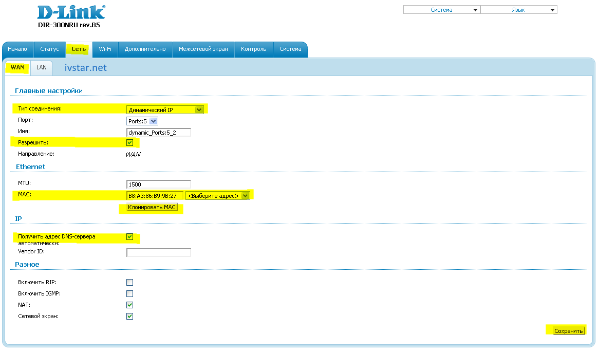 Настройка D-Link DIR-300 NRU B5 на RuDevice.ru