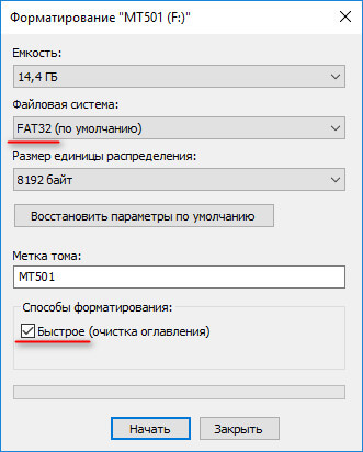 Шаг 2. Отформатируйте флешку, выбрав нужные параметры
