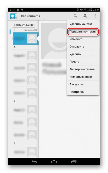 Остается лишь выбрать подходящий способ и отправить контакты.