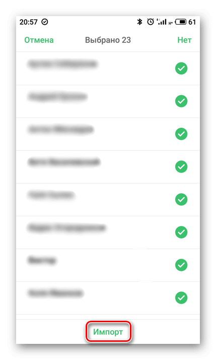 - Телефон предложит выбрать контакты, которые вы хотите отправить. Выделите те, которые нужно перенести.