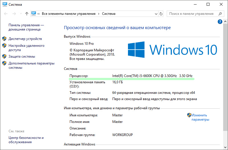 Здесь также можно просмотреть технические характеристики Windows, такие как выпуск и версия.