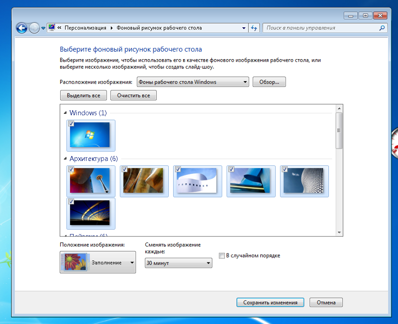 Как сделать меняющиеся обои в Windows 7, Vista?