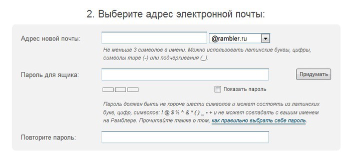 - Перед Вами откроется форма регистрации нового почтового ящика.