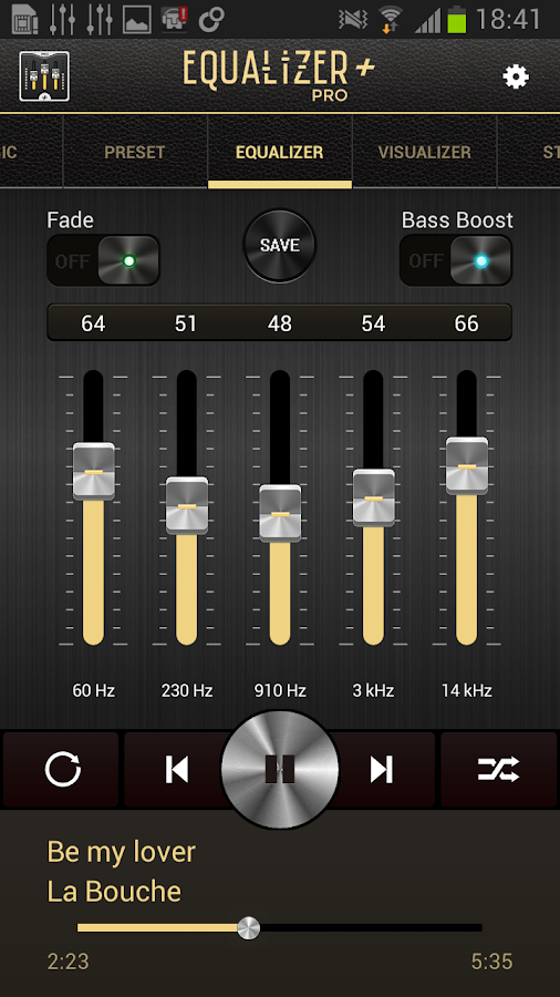 На экране проигрывания доступен графический десятиполосный эквалайзер с усилителем. Как и везде, можно выбрать пресет по звучанию — электроника, классика, акустика — установить усилитель или глушитель баса, либо настроить всё в ручном режиме. Возможно даже изменить скорость воспроизведения.