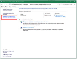 - В открывшемся меню слева найти надпись «Изменить дополнительные параметры…», откроется окно «Изменить параметры общего доступа…».